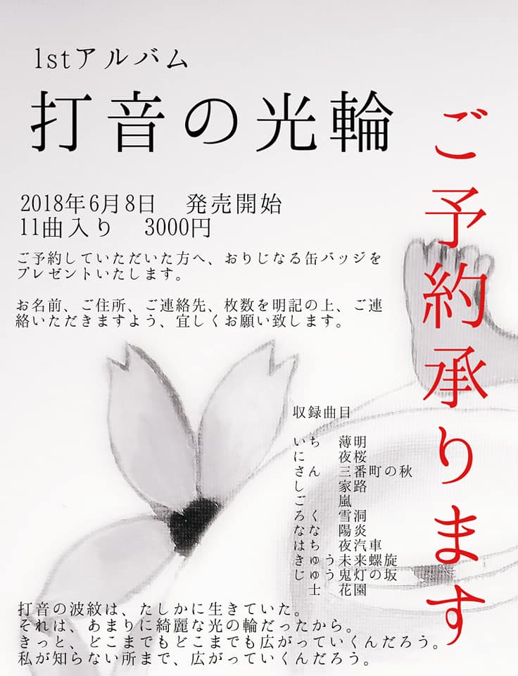 十一1stアルバム「打音の光輪」が2018年6月8日にリリースされます。