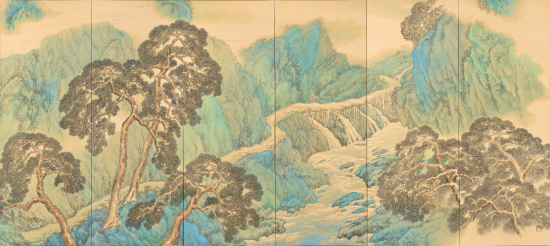 ・《東海春暁》1945年 絹本着彩軸装 ・《東海春暁》1944年 絹本着彩軸装 ・《松渓清韻》 1918年 裏箔絹本6曲1双屏風